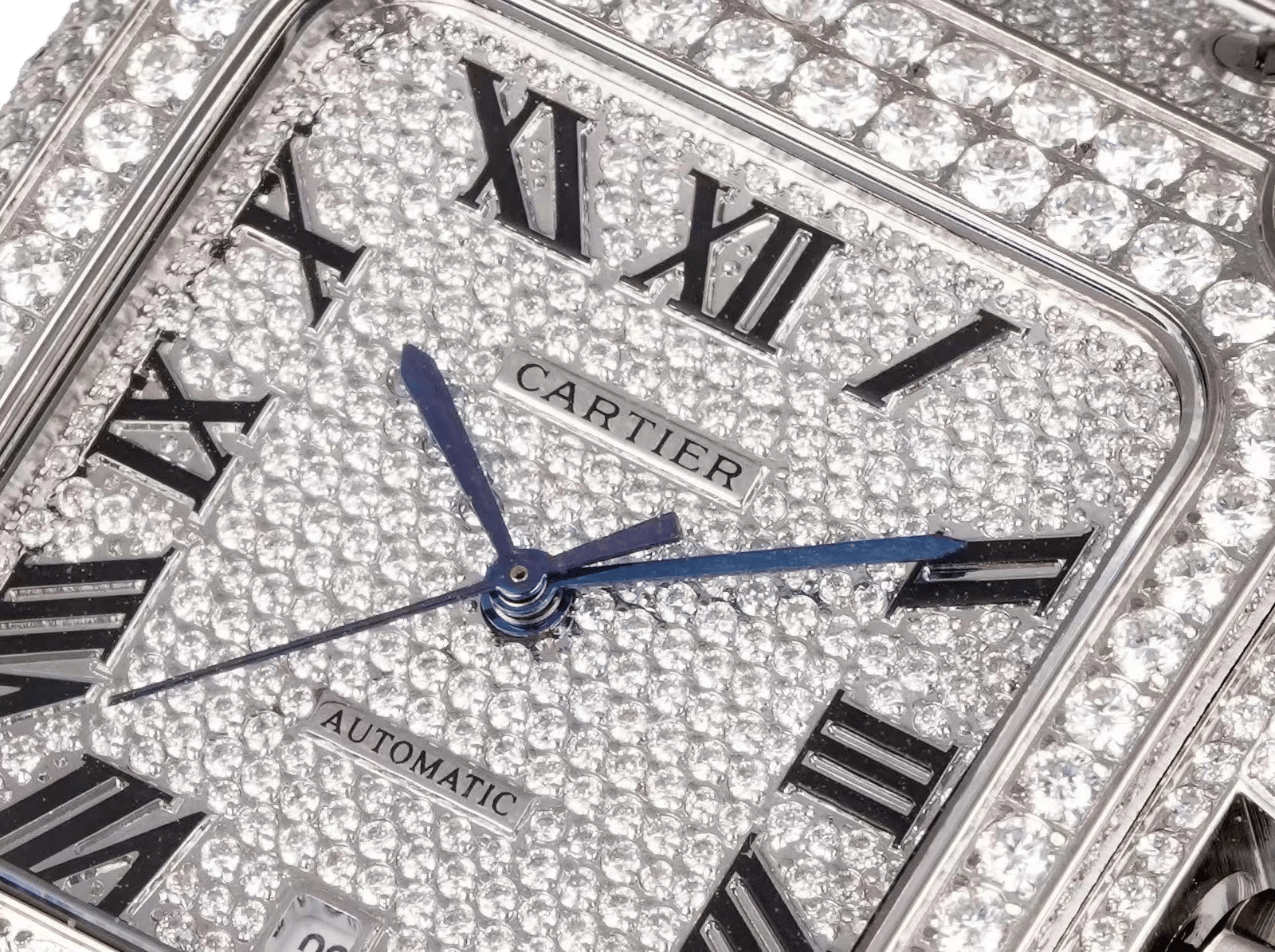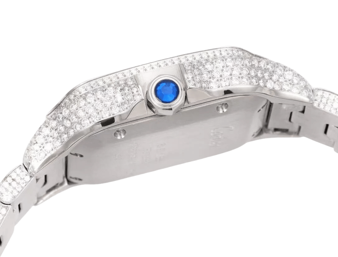 Moissanite is a highly sought-after diamond alternative known for its incredible brilliance, fire, and durability. This watch offers the same eye-catching sparkle as high-end diamond watches while providing excellent durability for everyday wear. Moissanite is also known to pass standard diamond tester devices due to its similar thermal properties, making it one of the most convincing diamond alternatives available.
